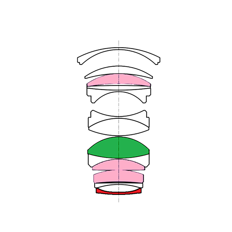 镜组结构采用1枚ED镜片,1枚非球面镜片,4枚特殊高折射玻璃。
