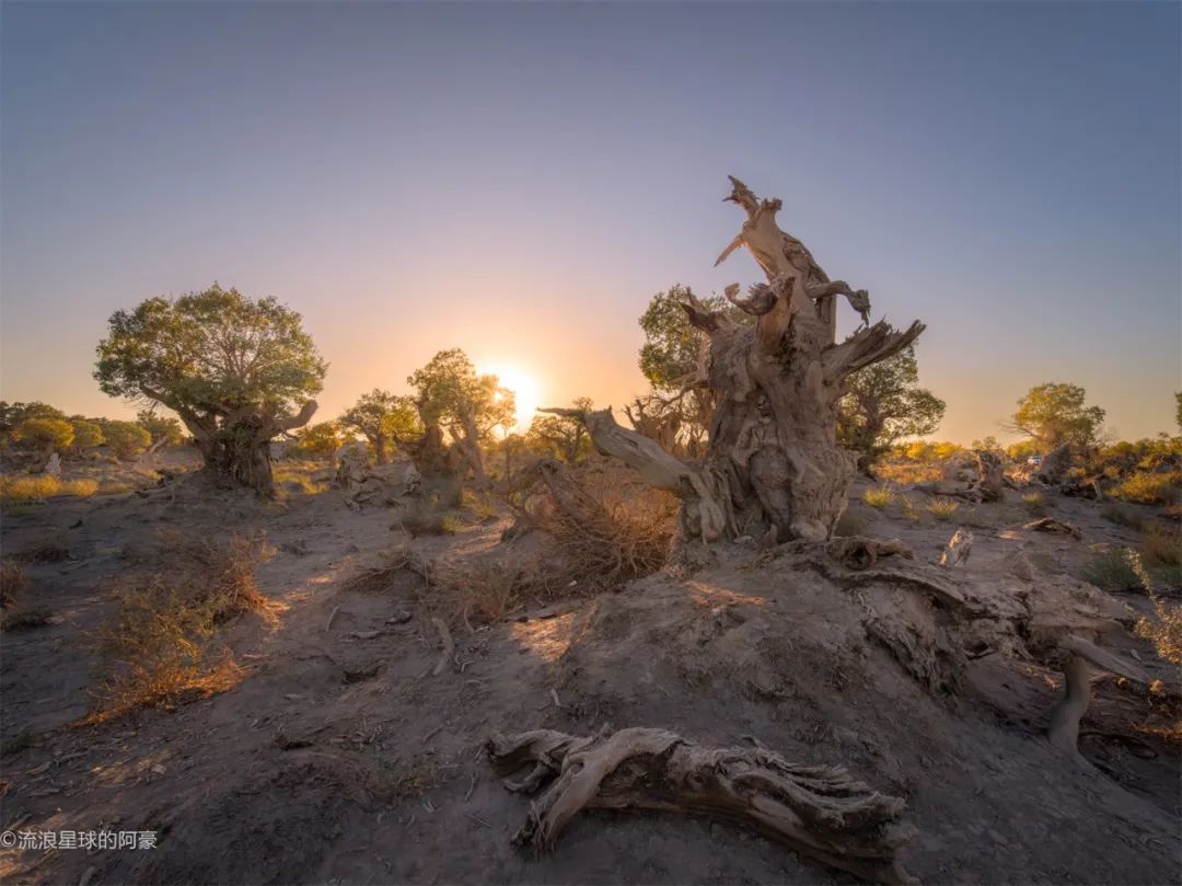 踏足塔克拉玛干沙漠,拍摄宁静的胡杨秋色。