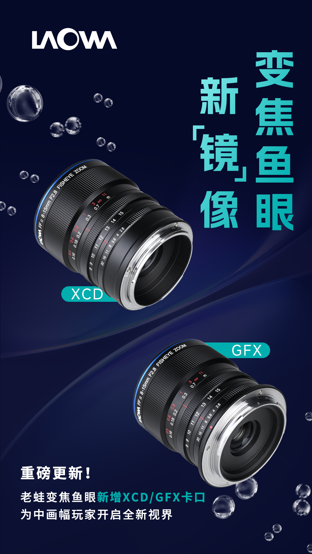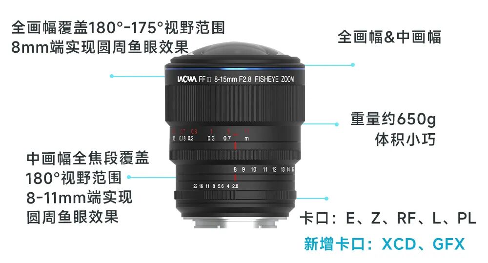 此次新增富士GFX与哈苏XCD卡口,标志着老蛙正式将变焦鱼眼镜头的魅力引入中画幅领域。