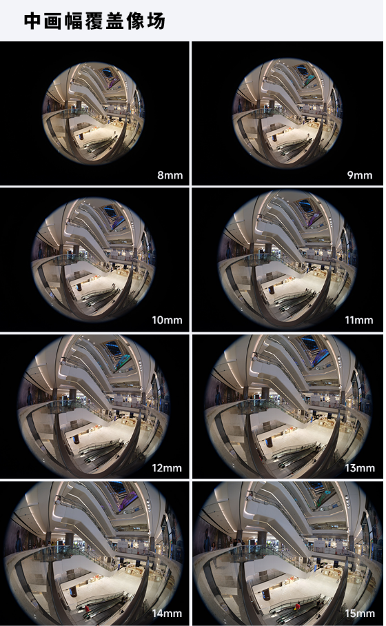 新增镜头卡口产品特性与全画幅基本保持一致,唯一区别15mm端拍摄时,像场无法完全覆盖中画幅传感器如下图所示,画面边缘会出现黑边无法完全覆盖像场的情况,用户可根据实际创作需求,通过后期裁切灵活处理。