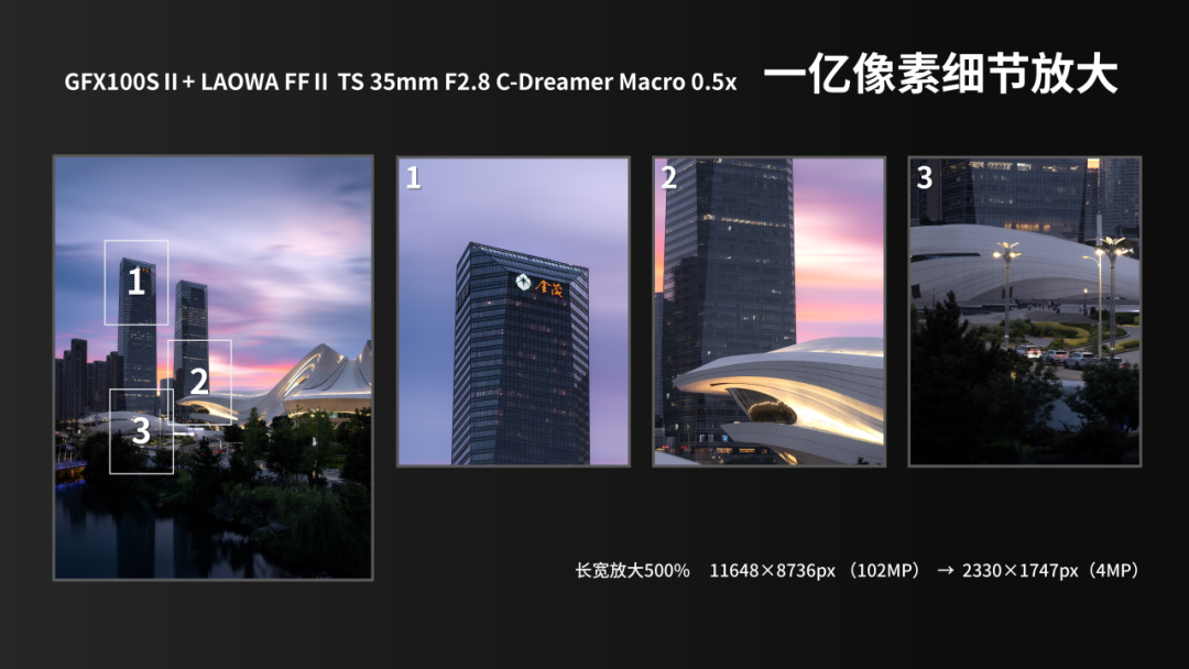 这一篇主要讲述这颗镜头在富士 GFX 100S II机身上的使用体验,探讨它在中画幅上的应用优势,比如在一亿像素输出下的画质表现、移轴接片以及“小人国”题材的拍摄。