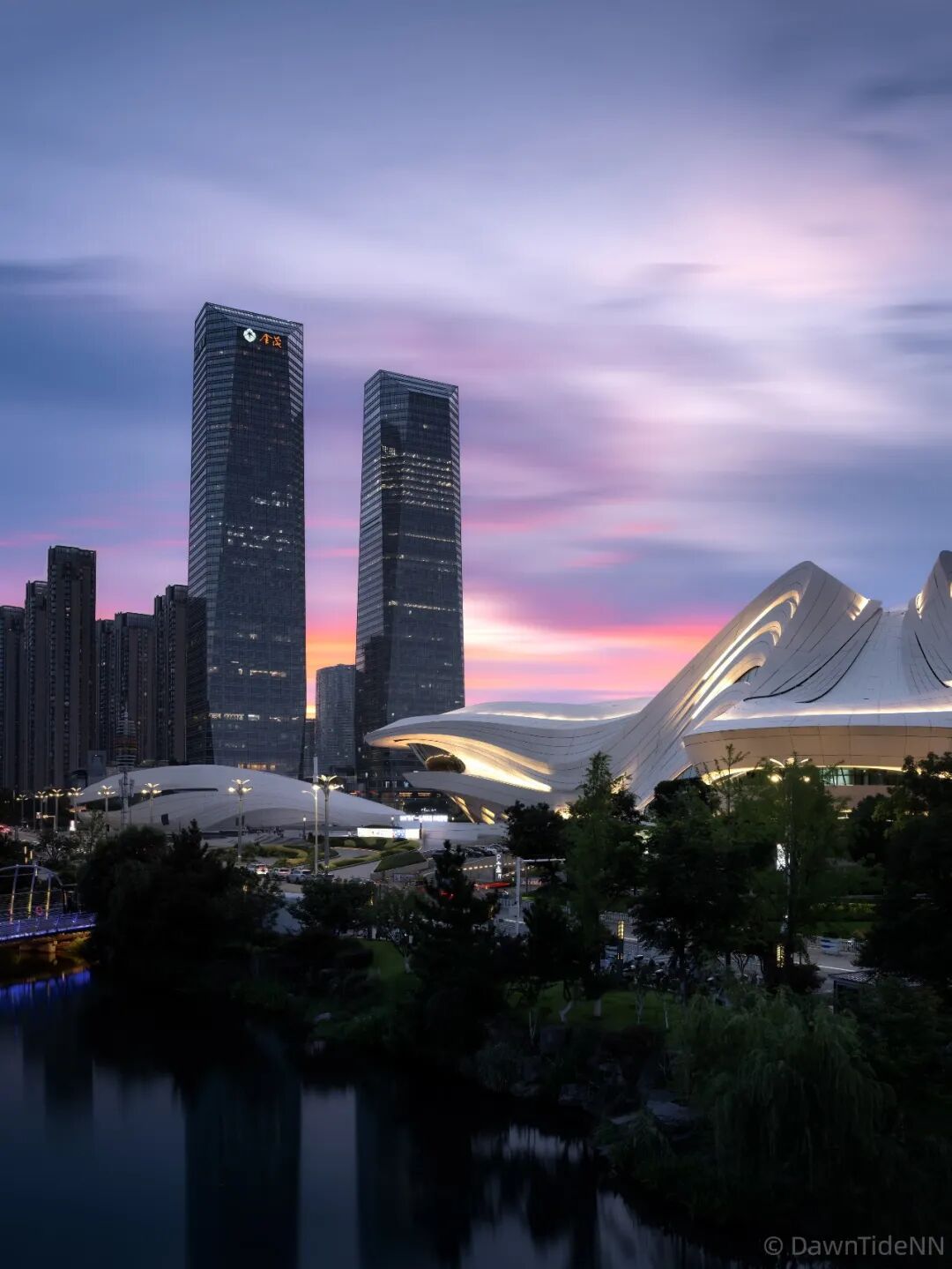 在梅溪湖艺术博物馆旁的大桥上,我使用了S方向的移轴功能,并搭配GFX的16bit RAW文件和前置ND滤镜来拍摄。