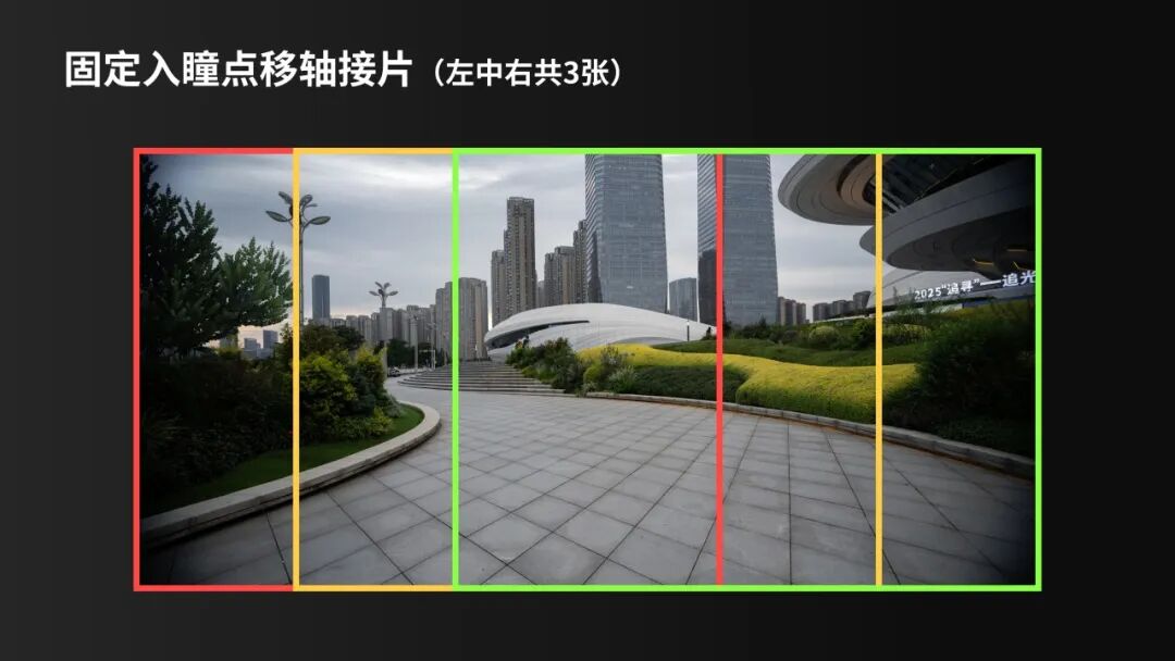 而在需要更大视野时,移轴接片功能显得尤为实用。得益于移轴支架与镜身一体化设计,在移轴接片过程中镜头无需移动位置,因此入瞳点一致,可以获得更好的接片效果。