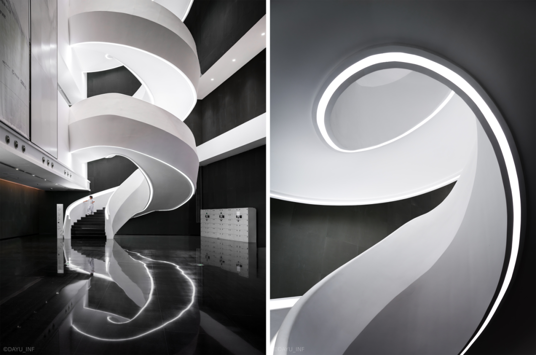 到了建筑里面,有一座设计感十足的的旋转楼梯,我用35mm移轴拍摄了旋转楼梯的不同角度的整体以及局部。因为场馆里面禁止使用三脚架,加上光线较暗,得益于F2.8-22的光圈范围,我可以灵活选择合适的光圈来应对不同的拍摄需求,并且画面解析力十分优秀。