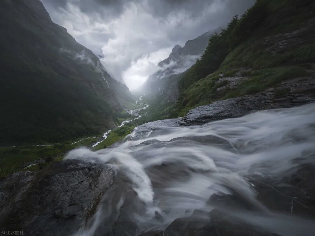 在一个暴雨天的法国,从图中山谷河流的谷口最远方徒步一路上行到半山腰,沿途近百条瀑布挣脱山岩的束缚,轰鸣着倾泻而下——那景象,简直是大自然一场酣畅淋漓的挥毫。