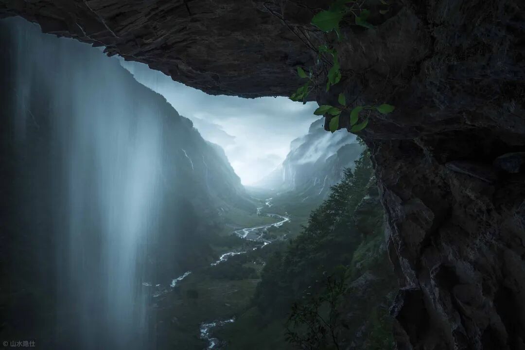 其实在整个路上我就想过n种构图画面的可能性,比如找个洞内向洞外拍形成一个框架构图,最好在洞口还有瀑布形成的雨幕作为前景。又或者寻找瀑布上方的溪流口作为前景并以河流为引导线构图。没想到,这些飘在雨里的念头,竟在后来一一实现了。