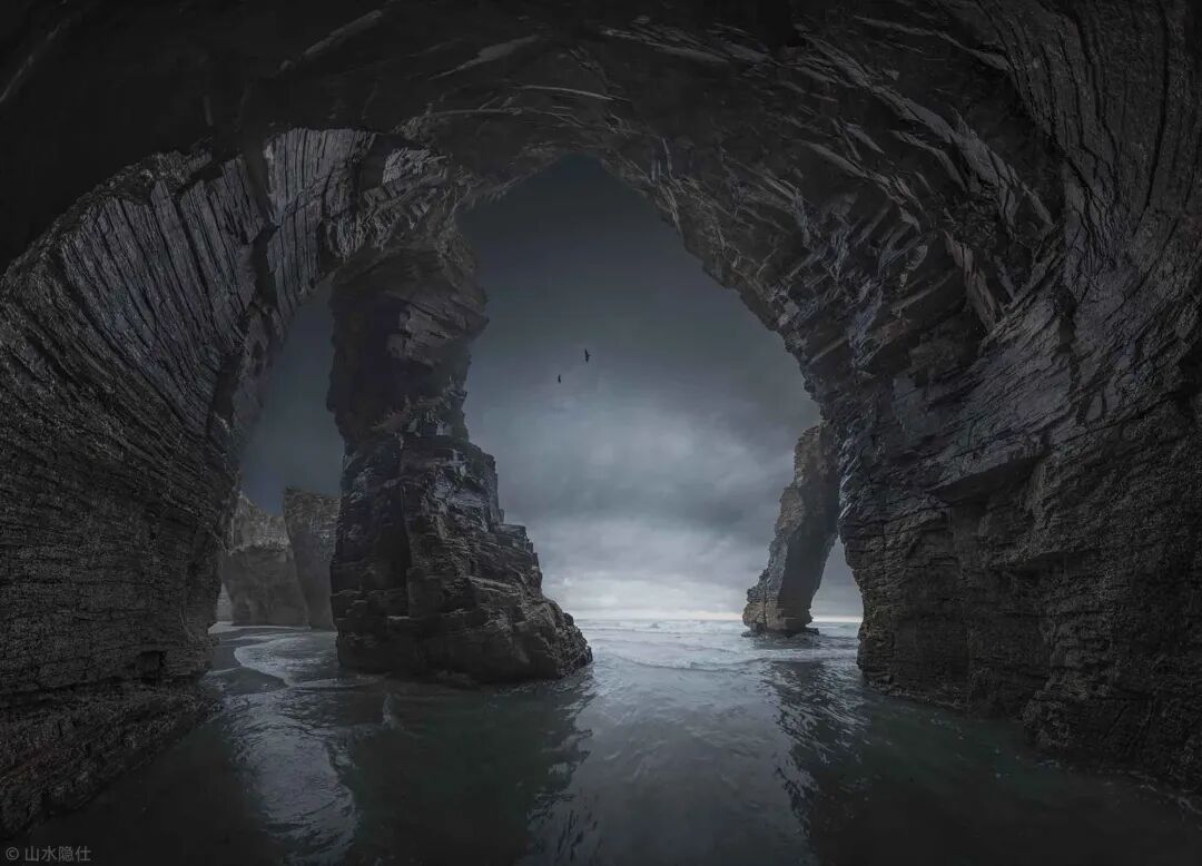 如果说欧洲除了阿尔卑斯山的雪山草甸吸引我,那么想必西班牙的大海也具备了天然魔幻般的场景。实际上,在拍摄奇幻海域这幅作品也是冒着巨大的危险,甚至可以说这样的前景浪花在全网也是独一无二的。在前一天确认潮汐拍摄最佳高度后的清晨,接近满潮时我就沿着海岸边深入挺进核心石门区域。