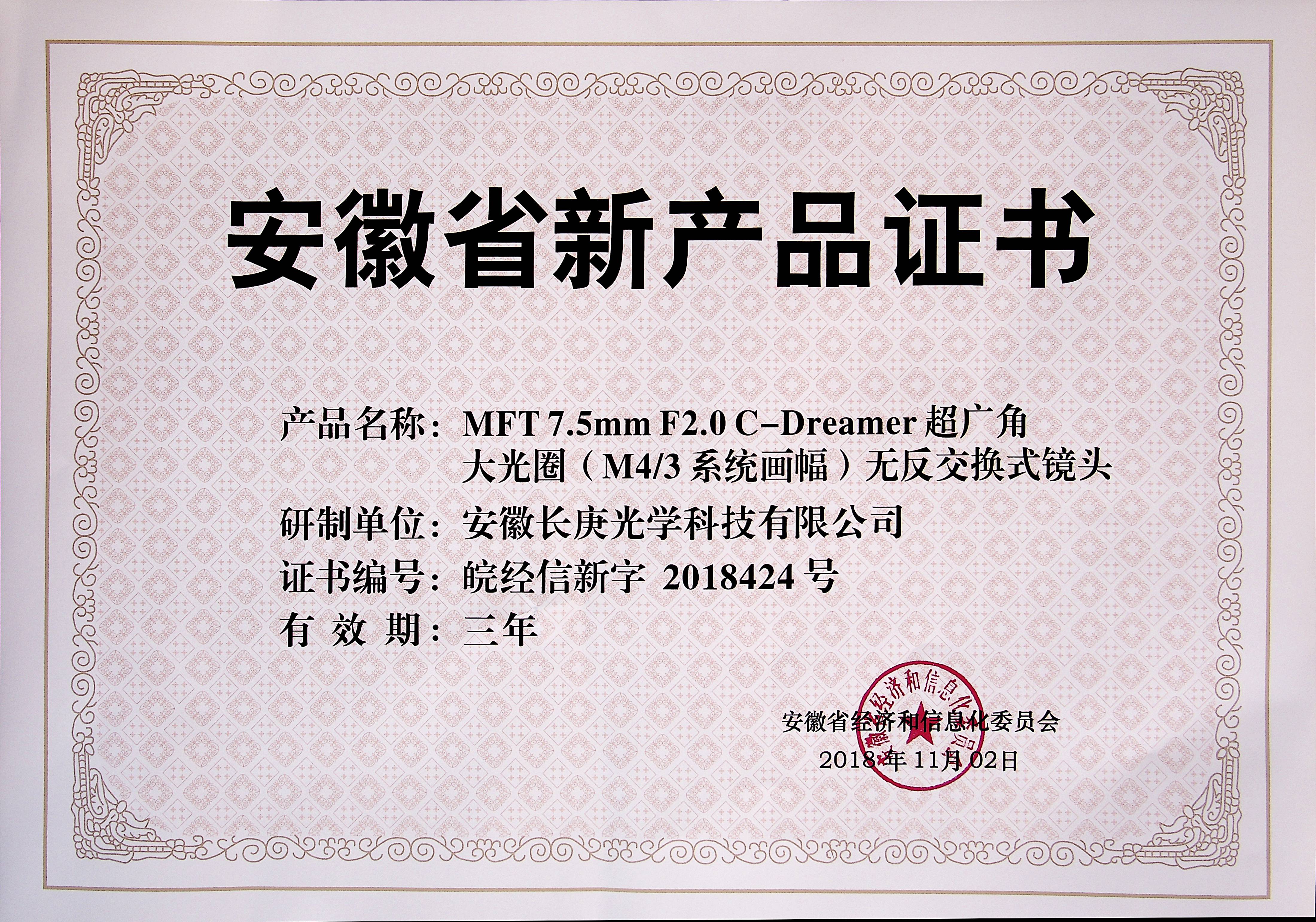 5月,发布FFⅡ 15mm F2.0 D-Dreamer无反超广角镜头,MFT 7.5mm F2.0 C-Dreamer无反超广镜头,开拓无反相机镜头领域和无人机镜头领域。