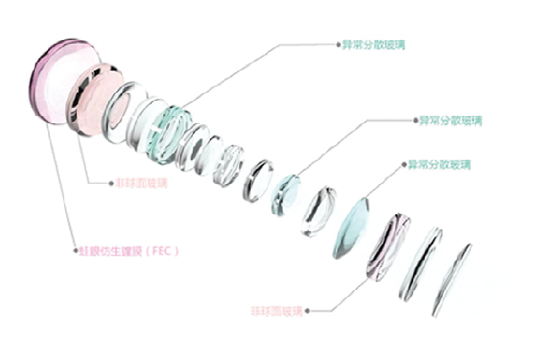 10组15片(含2枚非球面玻璃,3枚超低色散玻璃) |