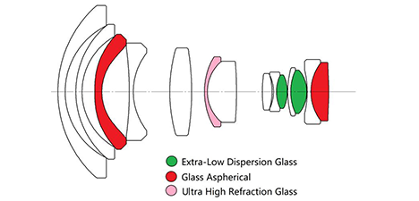 镜头结构采用2片非球面镜片,2片ED镜片,保证镜头锐度,有效降低色散和畸变,同时提高边缘画质。