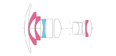 为保证从无穷远到近距离优异的成像素质,此镜头采用了主合焦组和 辅助合焦组两组移动合焦组,补正了因合焦而引起的解像 下降问题。