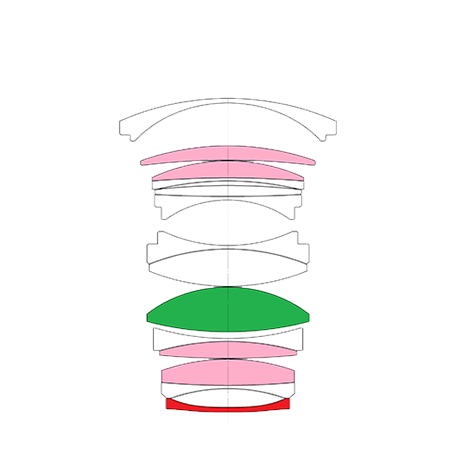 镜组结构采用1枚ED镜片,1枚非球面镜片,4枚特殊高折射玻璃。