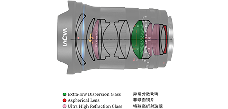 镜组结构采用1枚ED镜片,1枚非球面镜片,4枚特殊高折射玻璃。