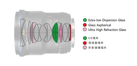 镜组结构采用1枚非球面镜片,1枚ED镜片,拥有近似于APO的色散抑制效果,高反差画面下不会出现明显色散,大大降低了后期时间成本。