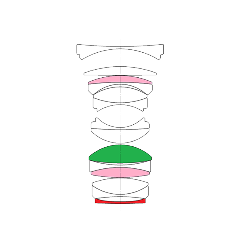 9组14枚(1枚非球面镜片、1枚ED镜片、2枚特殊高折射玻璃) |