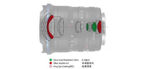 为了保证图像质量,采用了2枚非球面镜片与2枚异常分散镜片,最大限度降低了色散与畸变,同时提高边缘画质。