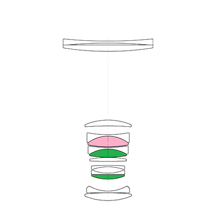 镜组结构为10组13枚,ED镜片的加持能够很好的抑制色散的出现