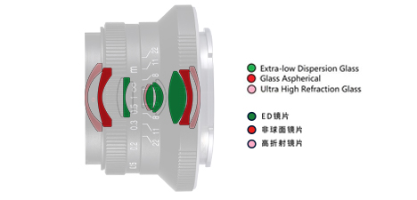 4枚ED镜片,2枚非球面设计,3枚特殊高折射玻璃