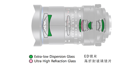 配备4低色散(ED)镜片,全面抑制可见光波段色散现象,