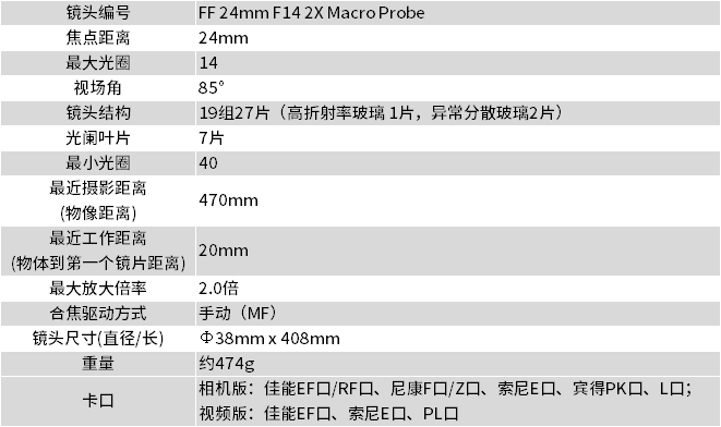 • FF 24mm F14 2X Macro Probe--新增佳能R口及尼康Z口