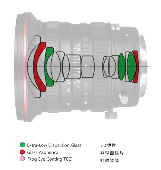所以,老蛙这次做了20mm F4.0移轴镜头,只有红圈版本,14针星芒。
