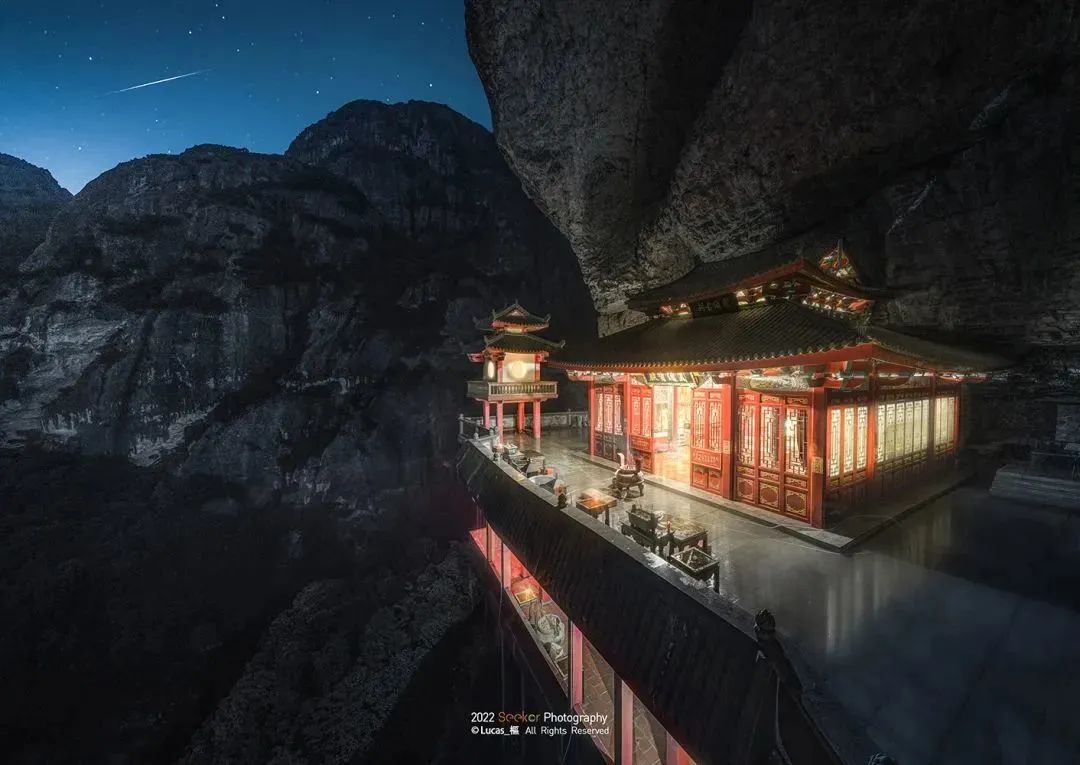 这张图拍摄于福建漳州灵通岩,灵通寺建造于悬崖峭壁之上,由于地势险峻,位置狭小,老蛙FFII 12-24mm F5.6 C-Dreamer的12mm端宽广视角便能将建筑与周围的山体岩壁囊括其中。