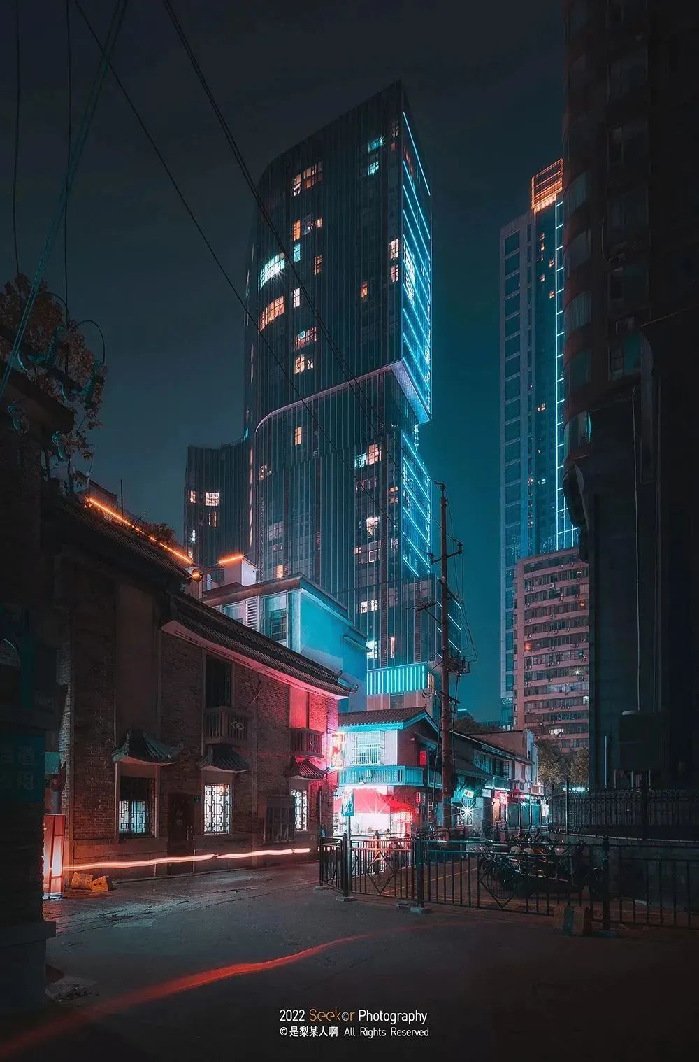 这张图很好地展现了我对长沙的印象——一座颇具“赛博朋克”风格的现代都市,而我想要让近处的街巷和远处的高楼在画面中形成对比来体现这种感觉,但这个机位离画面主体的大楼十分的近,幸好老蛙FFII 12-24mm F5.6 C-Dreamer的12mm端提供了足够广阔的视角让我可以顺利完成创作。