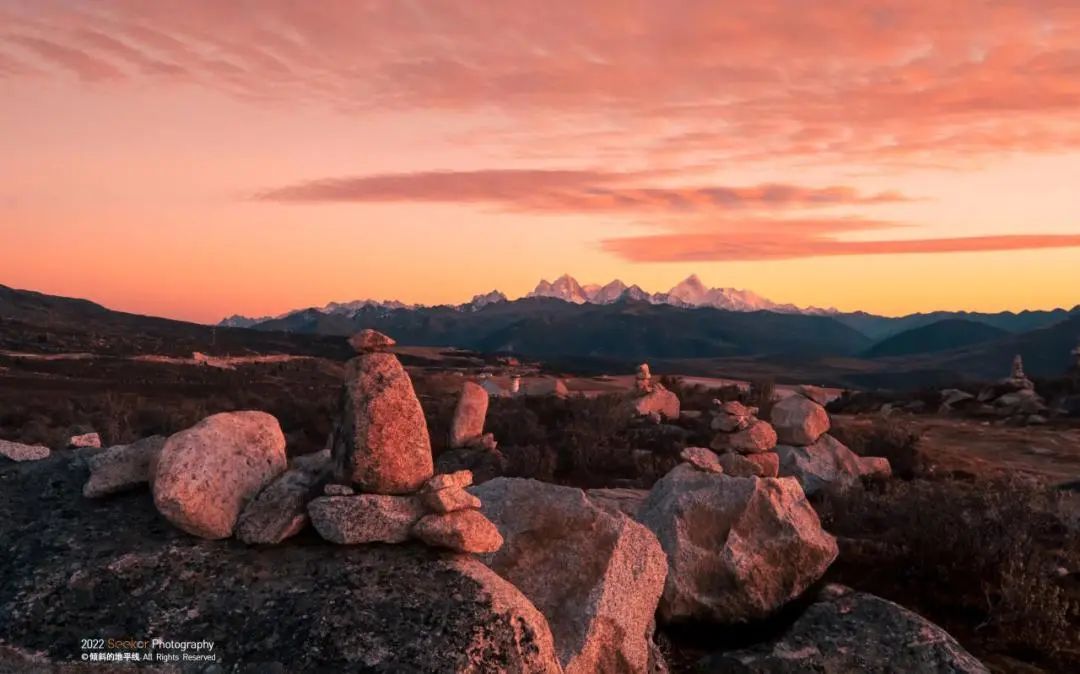 我把长焦架好,带着老蛙FFII 12-24mm F5.6 C-Dreamer不断往前行走30mins,终于发现这有趣的石头,在广角的透视下前景和远处的山相互呼应。正好是火烧云,记录下这一刻,不早不晚。