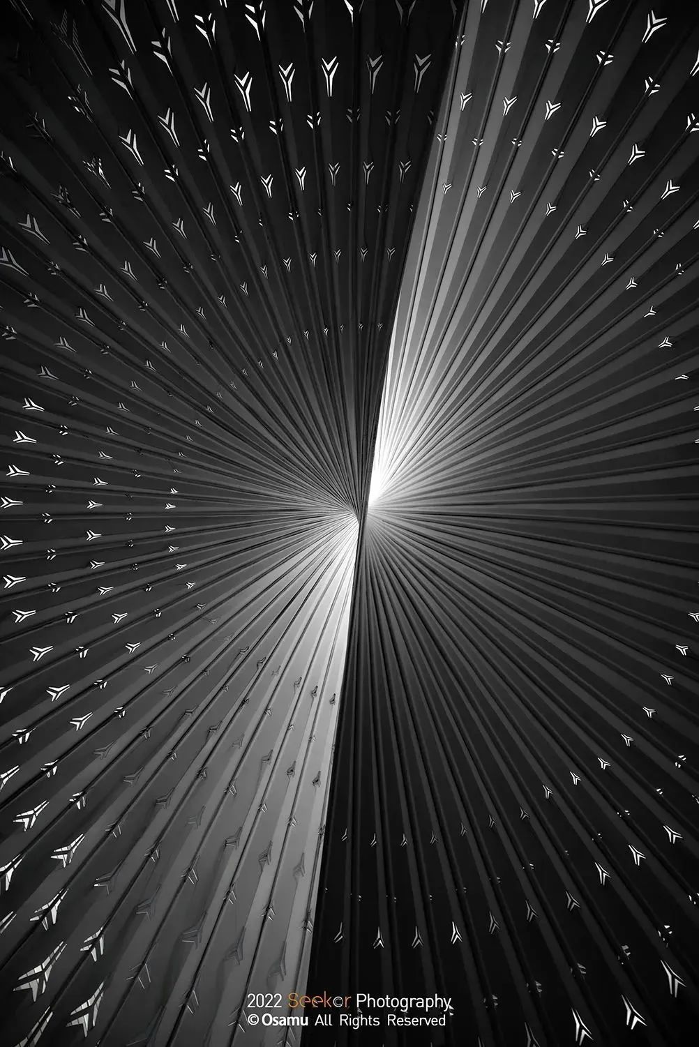 这是一个被很多人拍过的位置,但是我选择用黑白来突出线条的结构感,似乎在黑与白之间,这个建筑真的像一把折扇一样,在顺着光的方向慢慢转动。老蛙FFII 12 - 24mm F5.6 C - Dreamer所提供的宽广视角和零畸变使得这张图片更有视觉冲击力。