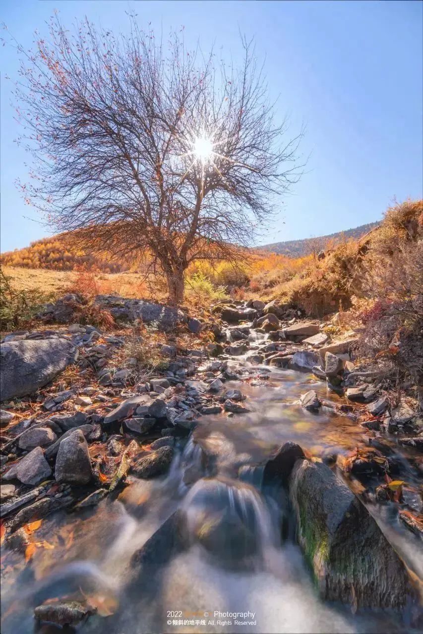 老蛙FFII 12 - 24mm F5.6 C - Dreamer给我留下很深的印象是他的星芒,非常锐利和工整,使用得当往往是图中的点睛之笔。在川西自驾的路上看到远处这棵小树造型特别喜欢,前面一条溪流可以作为前景,用树枝遮住部分太阳,镜头把他变成星芒,整个画面就生动起来。
