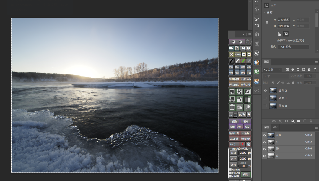选用一组包围曝光的其中一张向右曝光,降低曝光度,将高光拉回。