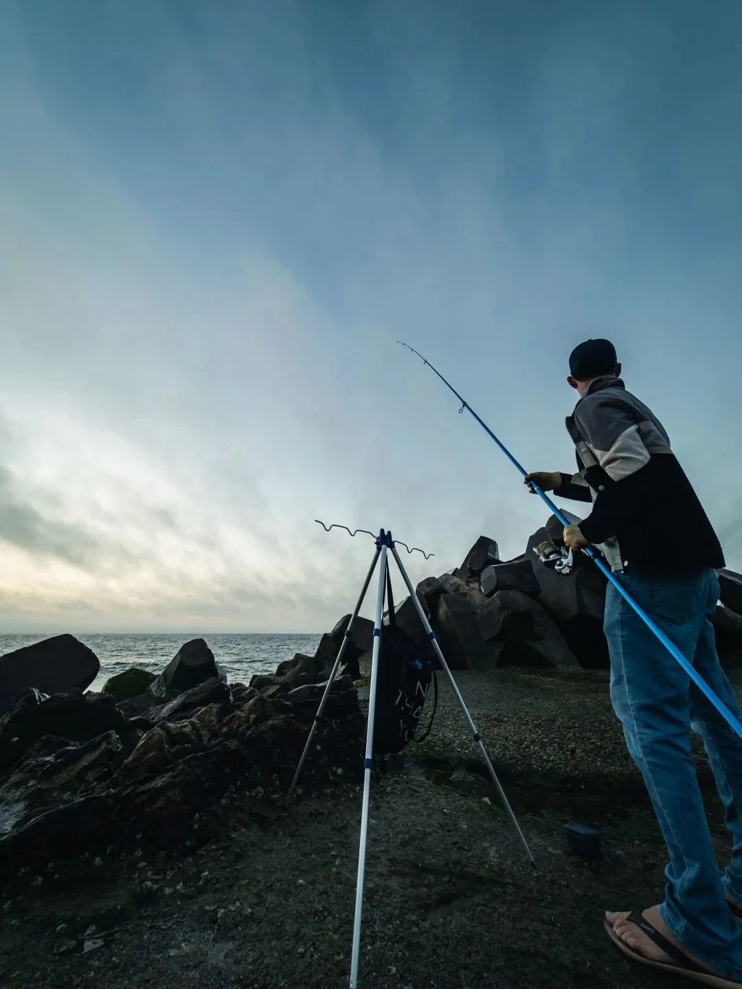 脚架和鱼竿的线条延伸感在超广角下被进一步强化