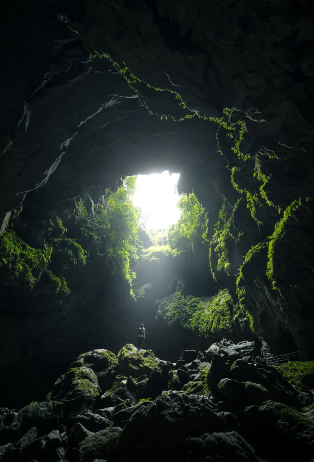 在拍摄这个场景中,我留意到天坑上方光线比较强,与四周漆黑的岩洞光比反差较大,拍摄时也需留心炫光问题会影响照片效果,而老蛙这枚镜头在拍摄时让我感到意外,似乎不容易受到炫光的干扰,镜头的抗炫光性能看起来相当出色,这意味着即使在光线较强或逆光的情况下,它也能够保持图像的清晰度和质量,这对于摄影来说是一项重要的优势。
