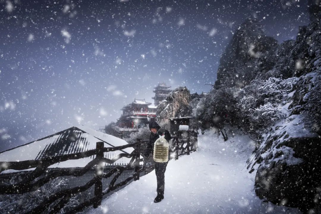 2月份的老君山,天气变幻莫测。在研究天气情况后,我选择了降雪的那一天前往老君山。然而,由于大雪的覆盖,山路格外崎岖,即使搭乘了二级索道,依然需要徒步一段行程登山。背负着约30斤的摄影器材和物资,配备着冰爪,幸运的是,老蛙12-24mm F5.6 C-Dreamer镜头的轻巧便捷使我能够在大雪覆盖的崎岖山路中轻松前行。