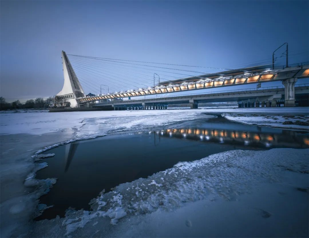 在雪后的长春卫星路大桥下,河面结冰,我找到了这样一处冰面的裂隙处,老蛙10mm F2.8的极限超广赋予了画面更多的可能性,能将整块冰面构入画面之中。再加上这支镜头是老蛙一贯的平口77mm滤镜,与之前的滤镜正好通用,更加方便了风光创作。并且能看到单张照片里,位于画面边缘处的积雪细节依然丰富。
