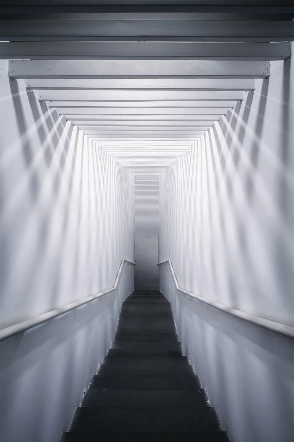 光线如音律一样,是基督教信仰及其仪式“在场”的重要形式元素,“在场”强调的正是通过声、光的引导将精神注入于“存在”的场所之中。在仅能容纳一人通行的阶梯上,光线如音律般洒落,10mm的极限超广角完美展现出建筑原本的设计理念。
