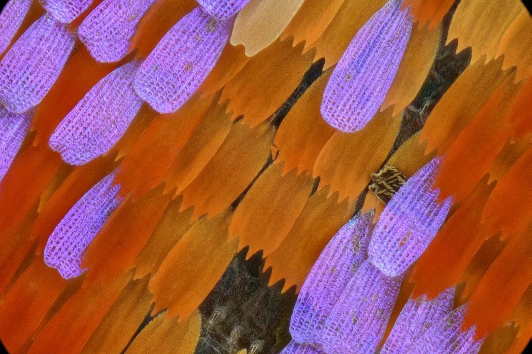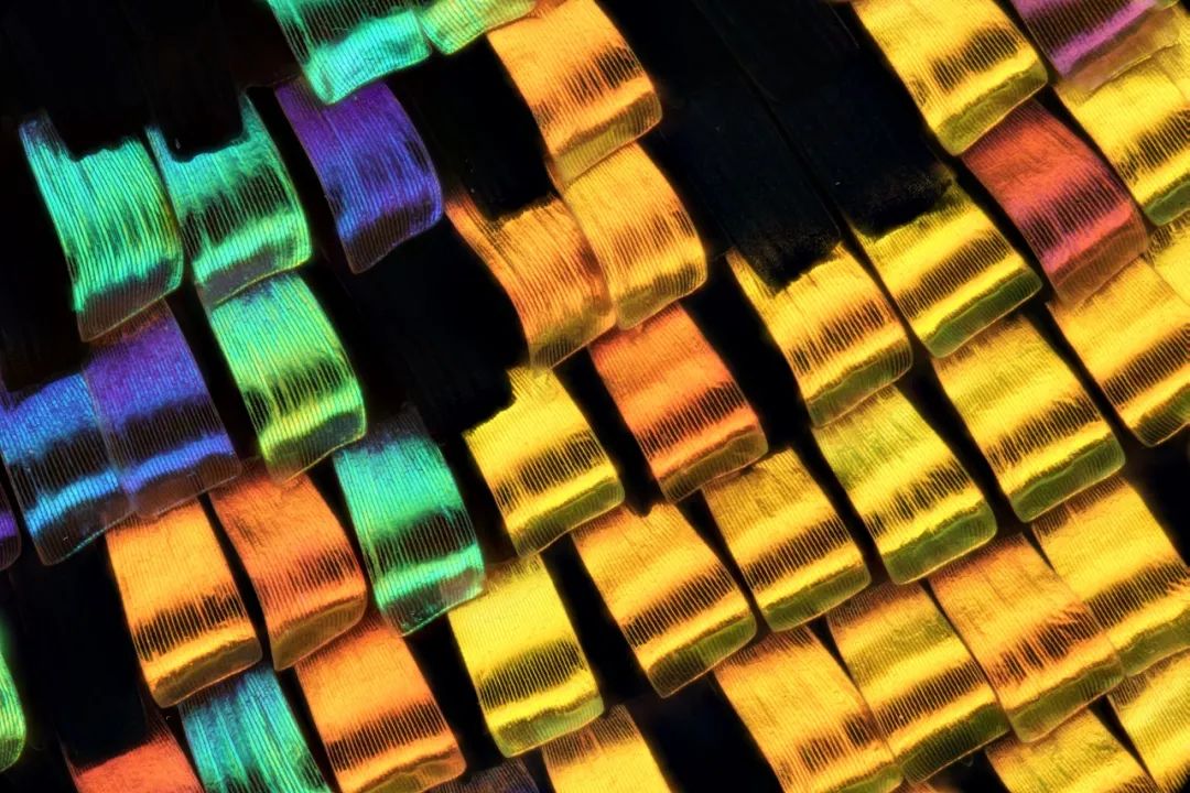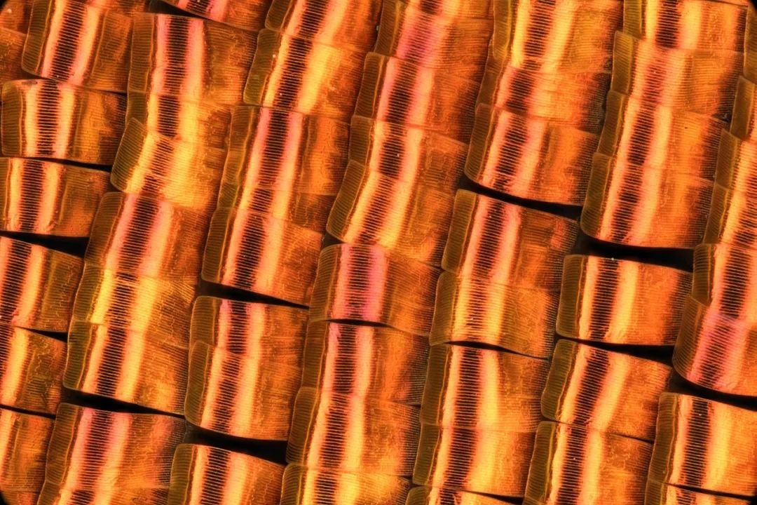 50X放大倍率下,通过多张堆栈得到的一张蝴蝶鳞片照片。这组镜头非常不错的远心度和近乎零的畸变,让拍摄10亿像素照片都变得非常轻松。