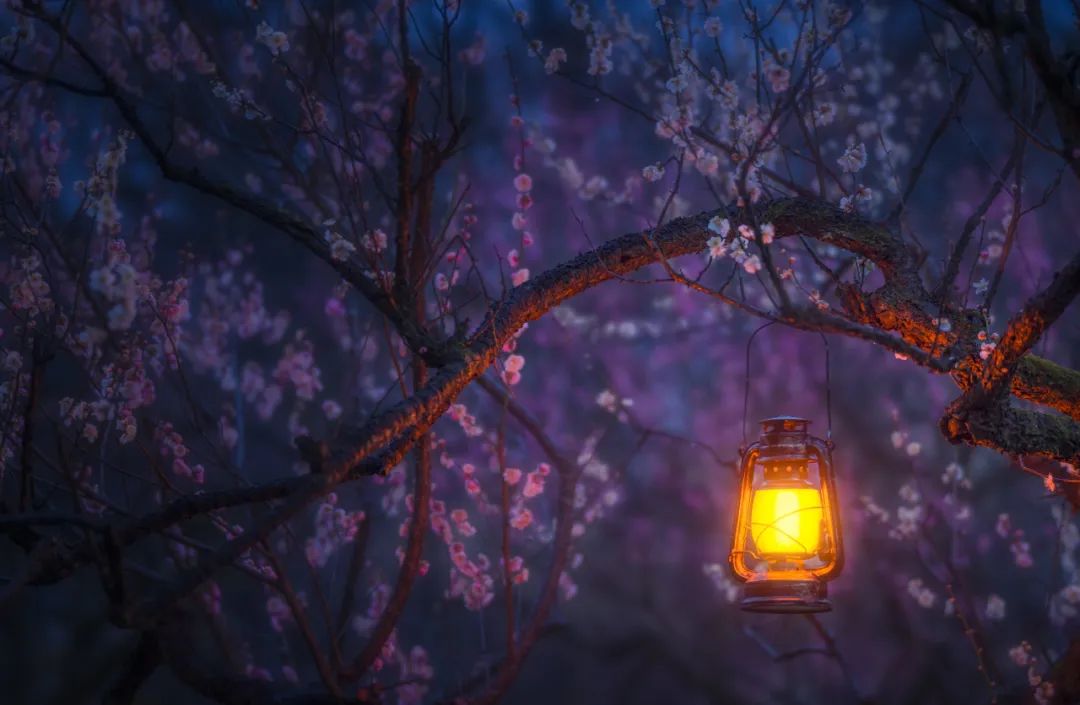得益于105mm F2.0镜头的大光圈,即使在光照度低的夜晚,也能让画面中心的枝干纹理清晰,而边缘过渡柔和,氛围感十足。梅花以淡然的态度面对世间的纷扰,用清新的花香传递着春天的信息,成为了春日里一道不可或缺的风景,而夜晚的梅花更多一份神秘色彩。