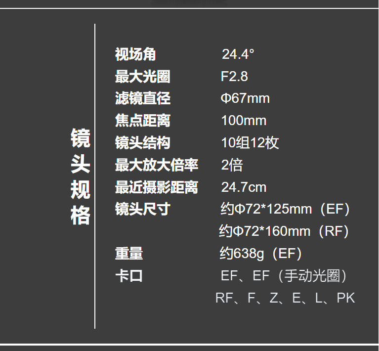 老蛙百微的最近摄影距离仅为24.7cm,这个数值下,在CMOS上的成像长宽会是物体本身长宽的2倍,也就是将被摄物体2倍放大,基于这个优势,我们为这些实际大小仅1~3cm左右的矿物标本留下了许多影像。