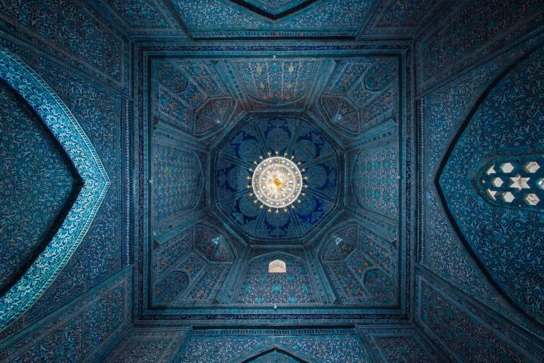 上图拍摄于希瓦古城巴勒万·马哈茂德陵墓,堪称此行我拍摄的最为优雅的一个穹顶,整个穹顶被蓝色调笼罩,装饰风格融合了西方的一些元素,不愧为大诗人的陵墓。整个内部空间其实并不大,在这里靠着10mm焦段的加持,我放低机位,拍下了“广阔”的内部空间。