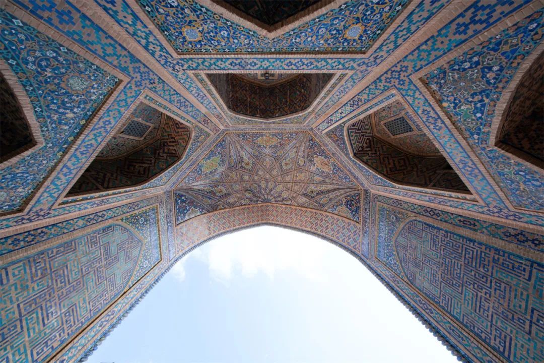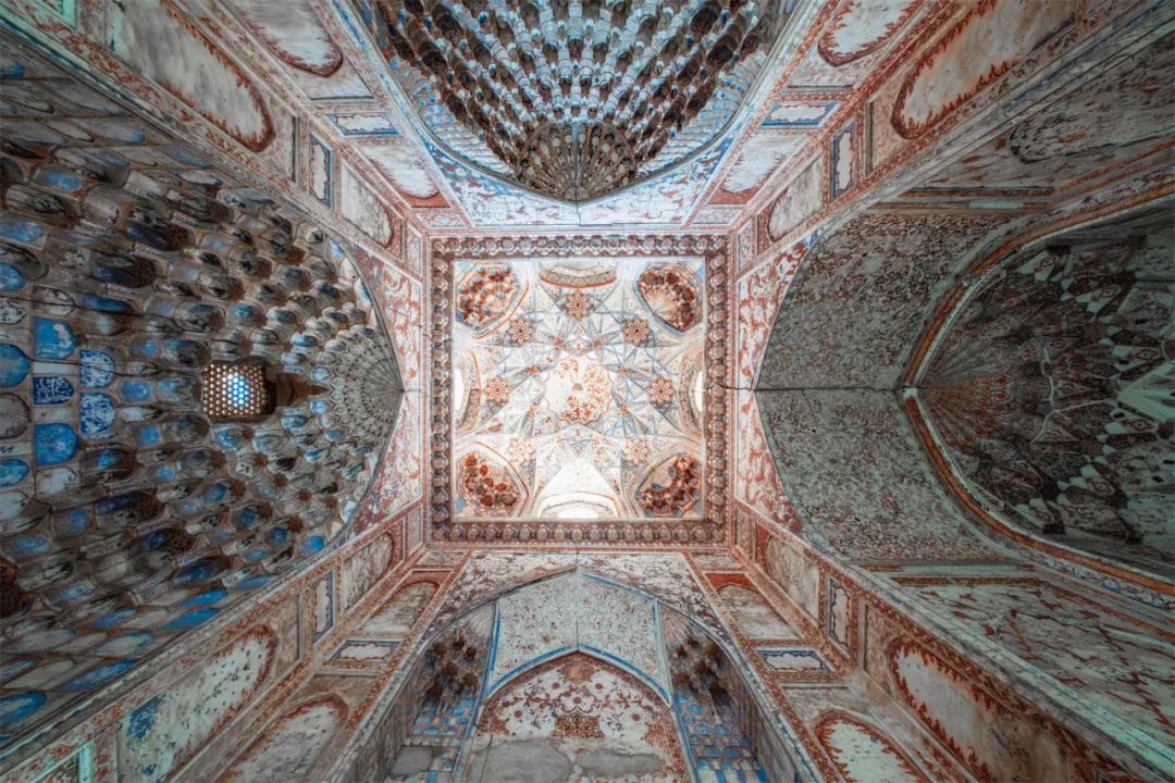 上图拍摄于撒马尔罕Aksaray Mausoleum,位于古尔埃米尔陵墓旁,这里埋葬着中亚霸主帖木儿的曾孙子们,这里和古尔埃米尔陵墓相比少了一丝恢弘的气势,但是线条和结构更加清新柔美,我平移相机,让穹顶结构呈现菱形,以更好的呈现结构的美感。