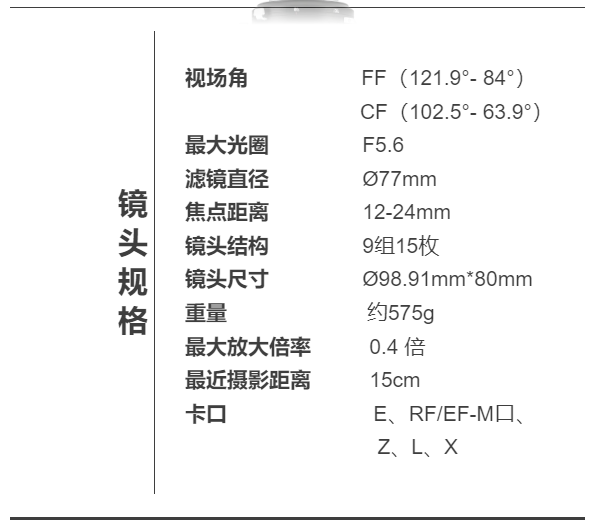 - 索尼E,佳能RF/EF-M,尼康Z,富士X,L