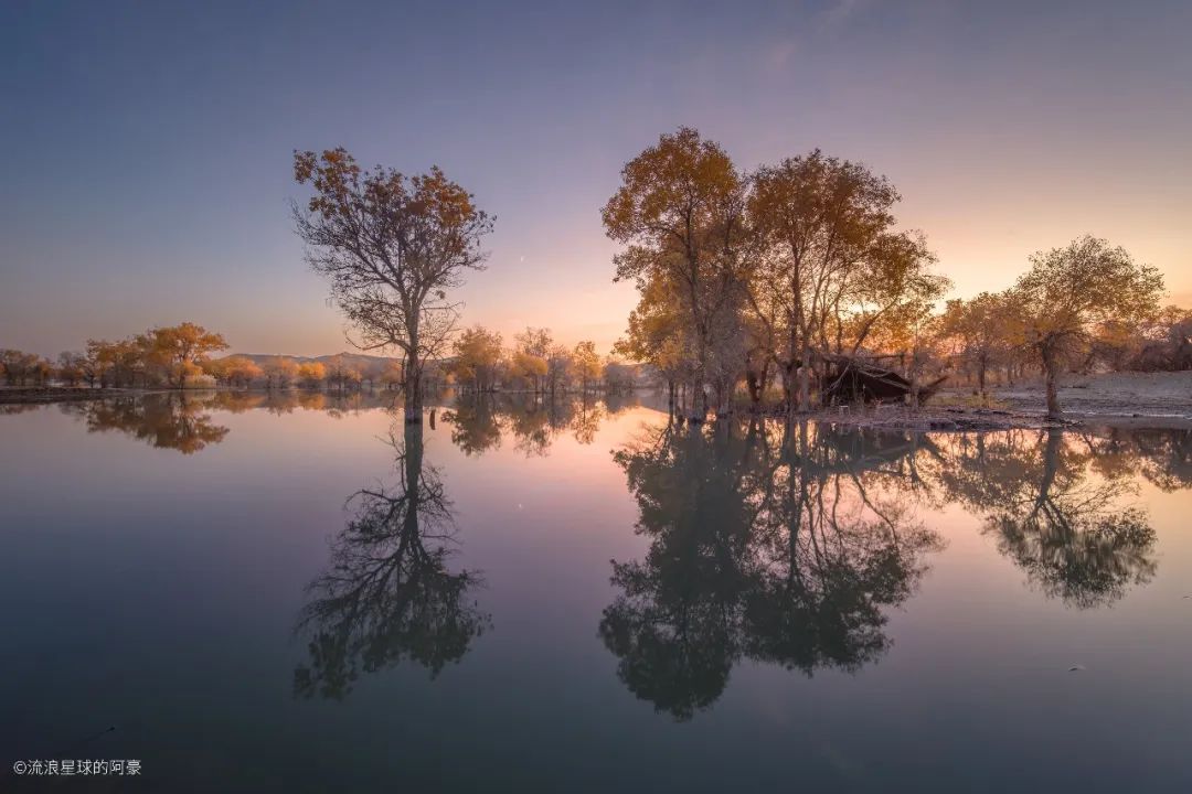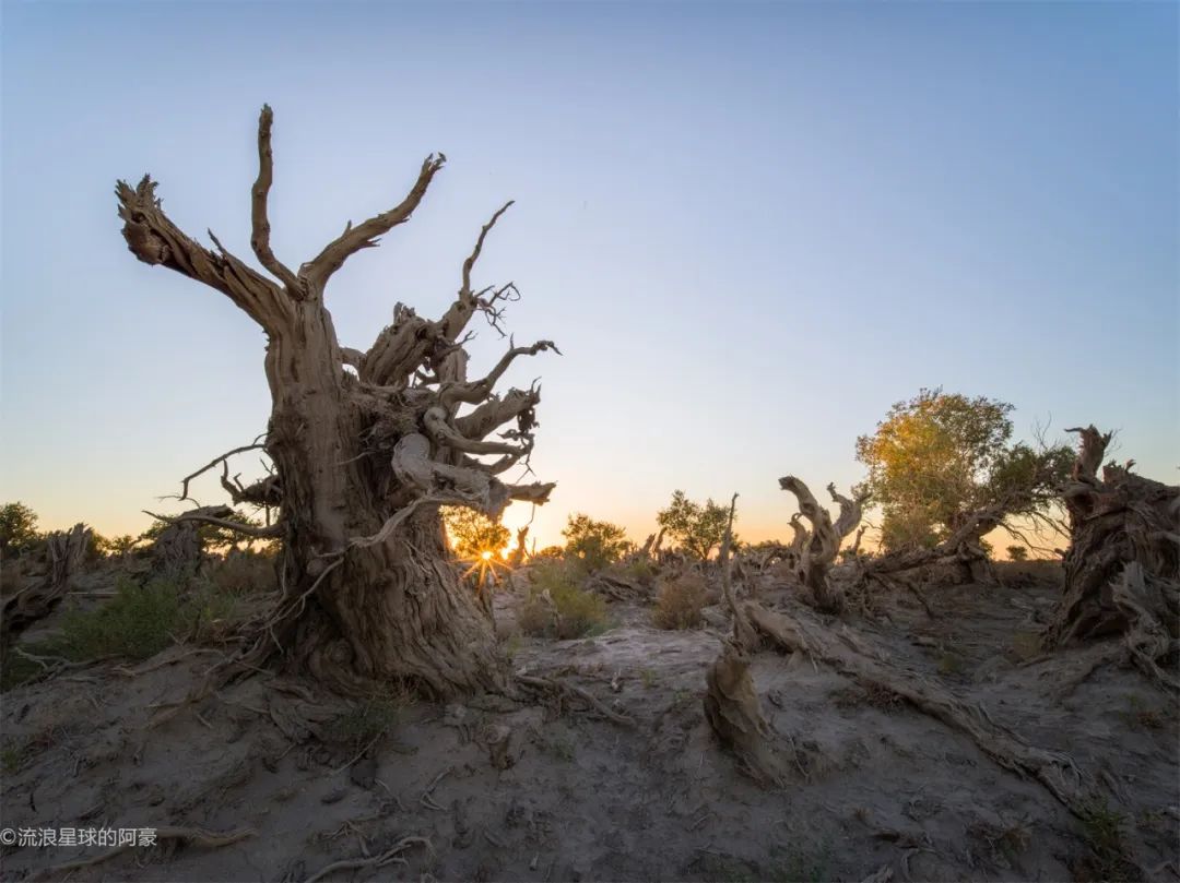 踏足塔克拉玛干沙漠,拍摄宁静的胡杨秋色。