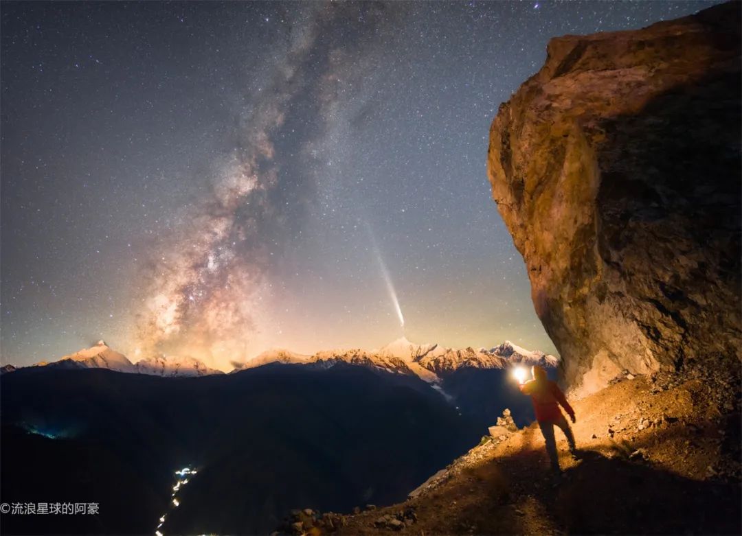 我用他记录下了今年紫金山彗星与梅里雪山月照金山同框的决定性时刻。