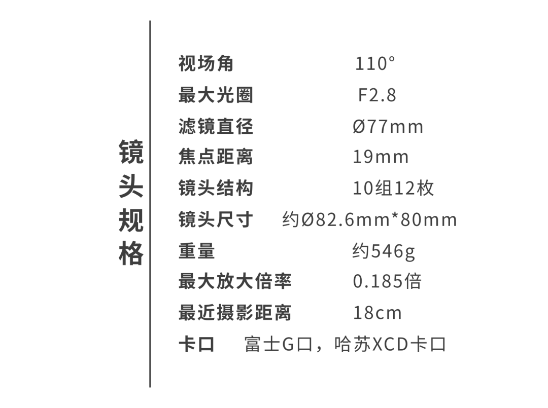 老蛙19mm F2.8等效全画幅15mm的视野,是我所知目前哈苏XCD生态视野最广的超广角镜头,原厂最广为20mm,而超广角的1mm带来的视角变化是无法比拟的。
