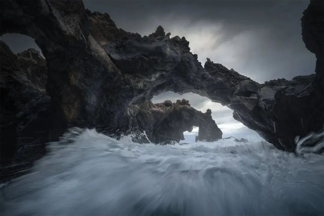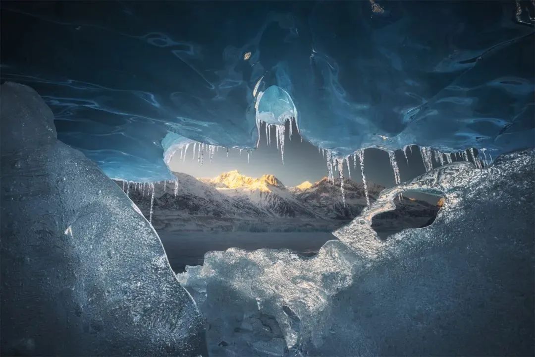 西藏然乌镇来古冰川,在2020年我就独自前往创作过,那时车子可以直接开到冰川脚下,没有游客更没有商业化,如今已然成为了景区。拍摄重心主要集中于在冻住的冰碛湖上寻找冰川融化后的裂缝冰洞。图中你可以看到前景下方半透明的冰块及顶部的纹理,而想要构图出彩则需要尽可能贴得足够近。