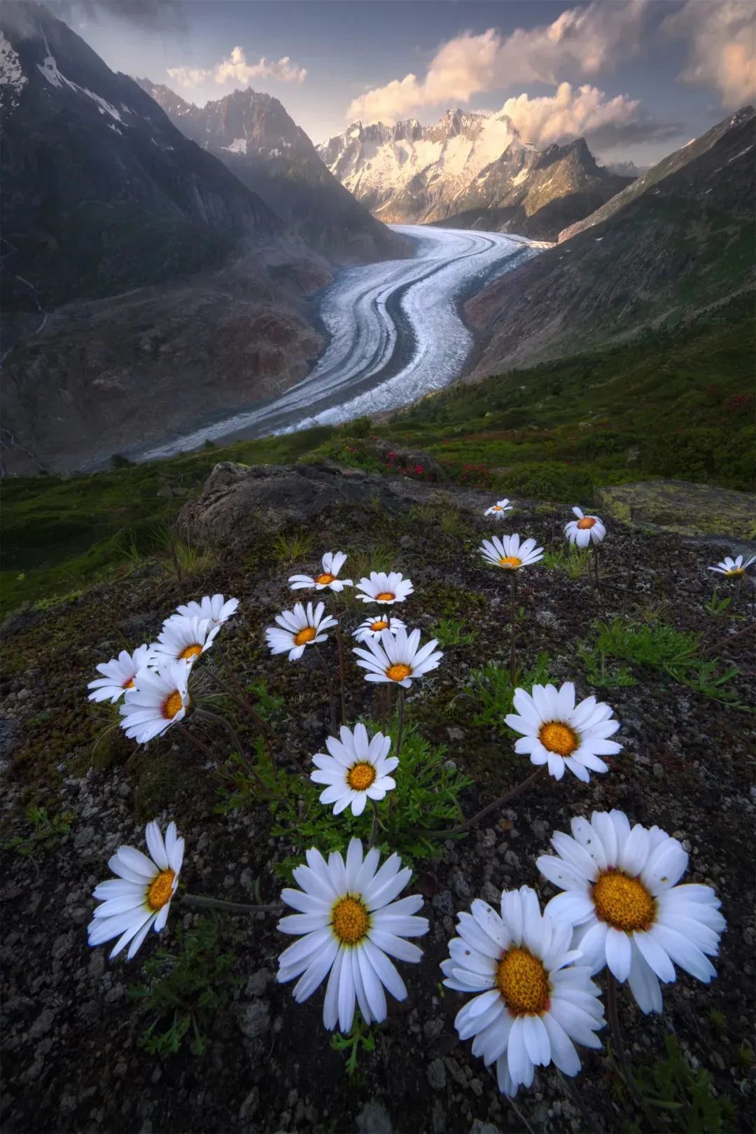 当然你拍得不够好是因为不够近,所以老蛙这支镜头的15cm最近对焦距离在拍摄时往往我就控制在15cm,这样花就足够大细节也较多,而广角的近大远小特性会导致雪山占比小,所以你需要走到更接近雪山的草甸去寻找恰当前景,这样才能保证远近比例和谐。