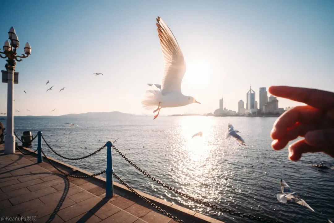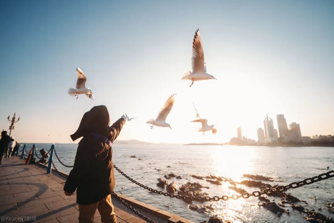 在冬日暖阳的照耀下,栈桥静卧于壮阔的海面之上,海鸥翩飞与悠然喂食的游人共同编织出一幅和谐的冬日画卷,于是,我先尝试用一些常规的视角,利用构图来展现和记录这座海滨城市的冬日浪漫。