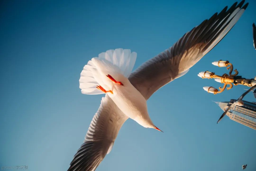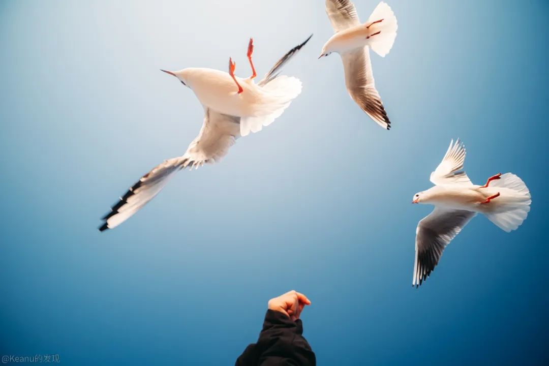考虑到当时海鸥密集的数量,我尝试使用低机位的仰拍,我的徕卡SL并没有翻转屏,但仰赖老蛙15mm镜头的小巧轻便(仅104克),以及110度视场角,并没有带给我操作上的繁琐和不便,反而让我在低角度盲拍的情况下,大大提升了出片的效率。