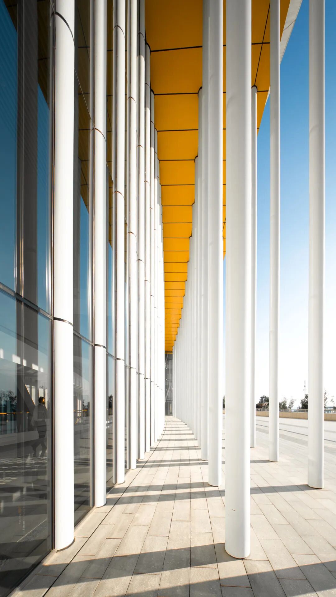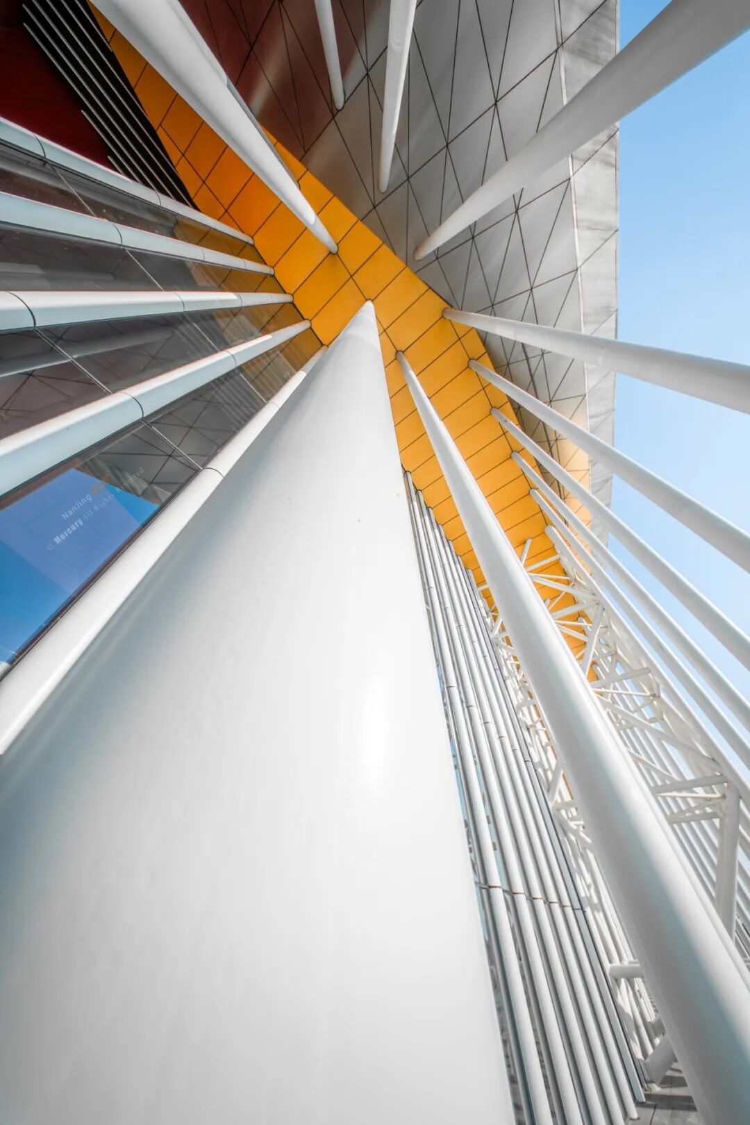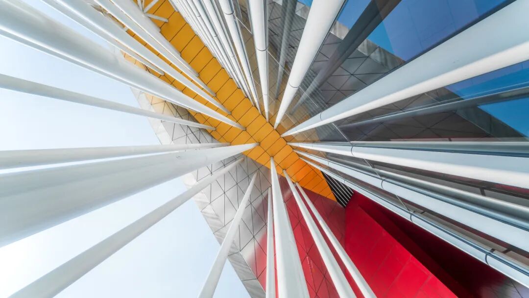 操控老蛙10mm镜头仰拍苏州湾文化艺术中心屋顶,超广视角瞬间将独特彩色屋顶完整囊括,畸变几近不见,建筑线条利落延展。丰富色彩精准还原,细节纤毫毕现,每一处转折与纹理都清晰呈现,帮我定格下这极具视觉冲击力的建筑美学佳作。